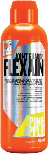 A FLEXAIN® ital formájában nagyon alkalmas olyan személyek számára is, akik gyakran megfeledkeznek a kényelmes italfogyasztási menetrendről. Egy adag FLEXAIN® koncentrátumot (25 ml) 420 ml vízzel hígíts fel. Így kiváló italt készítesz, és tudod, hogy nemcsak az ízületeidnek tettél jót, hanem a szükséges mennyiségű fontos folyadékot is megittad. A FLEXAIN® igényes sportolóknak készült, ezért nagy dózisban tartalmazza a legfontosabb kondroprotektív anyagokat egyedülálló kombinációban. És nem hatalmas tablettákban, hanem finom ital formájában, amelynek íze olyan, mint egy igazi gyümölcslé! Minden hatóanyag jobban és gyorsabban felszívódik ennek a folyékony formának köszönhetően. Az ízületi túlterhelés az erőnléti edzésekre és az állóképességi sportokra egyaránt jellemző; a FLEXAIN®a sportolók széles spektrumának is megfelel. Egy üvegből akár 16 l italt is készíthet!A FLEXAIN® az ízületek jó működéséhez nélkülözhetetlen anyagok kombinációját tartalmazza: kollagén-hidrolizátum (kollagén peptidek), MSM, kondroitin-szulfát, glükózamin-szulfát, hialuronsav (natriumsó), ásványi anyagok: kalcium és magnézium, valamint szabad aminosavak: prolin és glicin, mindezek vitamin komplexszel gazdagítva, amelyek közül különösen a C-vitamin járul hozzá a normál kollagénképződéshez az erek, porcok és csontok normál működéséhez. A nulla zsír- és cukortartalom nagy előnye új termékünknek! Ennek köszönhetően fogyókúrás programban is használhatod!Természetesnek tartjuk, hogy termékeink nem tartalmaznak kémiai színezékeket, csak természetes színezékeket, hasonlóan a FLEXAIN® is csak természetes színezékeket tartalmaz. Keverj el 25 ml Flexain koncentrátumot 420 ml vízben. Az elkészített, hígított italt a nap folyamán bármikor fogyaszd. Oszd el a napi adagot (50 ml) két 25 ml-es részre. Az ital azonnali fogyasztásra szolgál. Minden használat előtt alaposan rázd fel az üveg tartalmát! Ne lépd túl az ajánlott napi adagot. Ne használd a terméket a változatos étrend helyettesítésére. Ajánlott a kiegyensúlyozott étrend és az egészséges életmód. Ne fogyaszd, ha allergiás vagy az összetevők bármelyikére. Gyermekek, terhes vagy szoptatós nők ne szedjék a terméket. Száraz, hűvös helyen, gyermekek elől elzárva tárolandó.