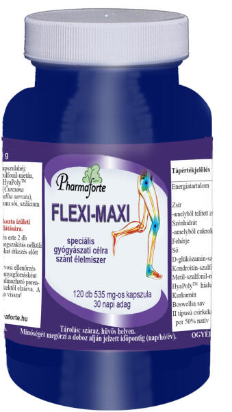 Flexi-Maxi speciális gyógyászati célra szánt élelmiszer, ízületek egészségéért, az ízületek állóképességének javításáért. A Flexi-Maxi a porc felépítésében résztvevő anyagokat pótol: glükózamint, kondroitin szulfátot, hialuronsavat, metil-szulfonil-metánt (MSM)], valamint II típusú csirkekollagént. Ezek segítik a porc újdonképződését, valamint két növény-kivonatot (Boswellia serrata vagyis tömjénfa gyanta és kurkuma kivonatai), amelyek gyulladáscsökkentő, fájdalomcsillapító hatásúak.