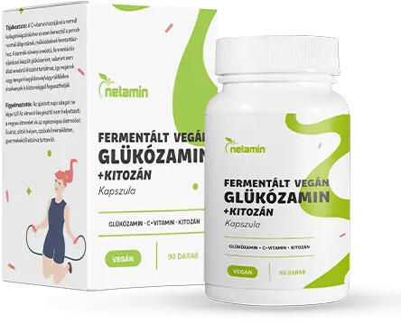 - reumás ízületi gyulladás esetén Egyéb tudnivalók a Netamin Fermentált Vegán Glükozamin + Kitozán kapszuláról: OGYÉI szám: 34260/2024 Hatóanyag Napi adag tartalmaz (3 kapszula) NRV% Glükózamin (fermentált, növényi eredetű) 1500 mg - C-vitamin 100 mg 125% Kitozán 30 mg - Összetevők: glükózamin-hidroklorid, kapszulahéj (hidroxipropil-metilcellulóz), mikrokristályos cellulóz, L-aszkorbinsav, kitozán, magnézium-sztearát.